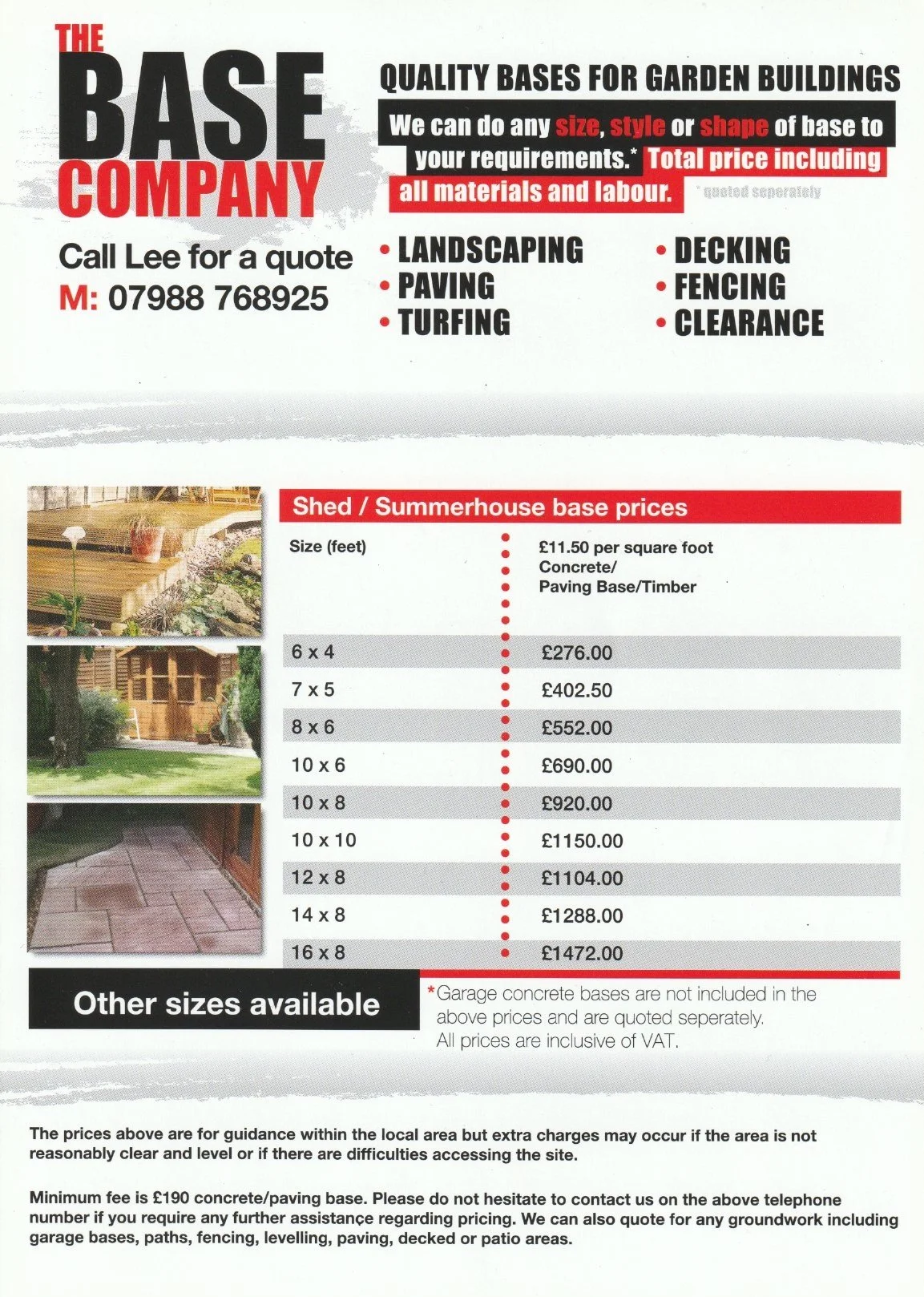 We offer bases and foundations designed for sheds, home offices, playhouses, greenhouses and more! As well as patios and fencing!